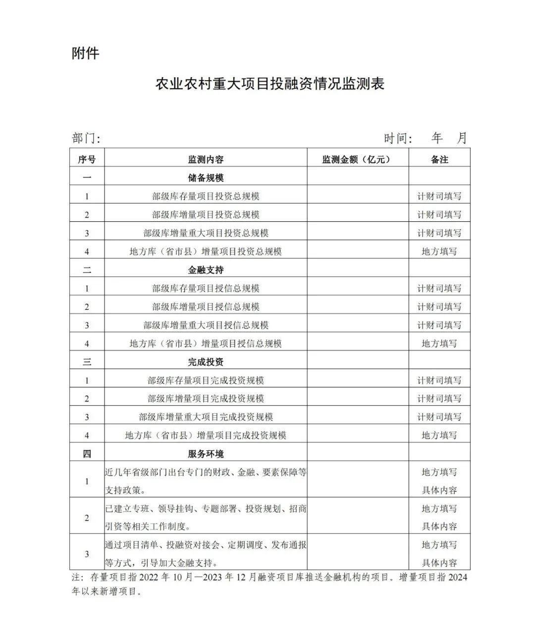 附件:農(nóng)業(yè)農(nóng)村重大項(xiàng)目投融資情況監(jiān)測(cè)表