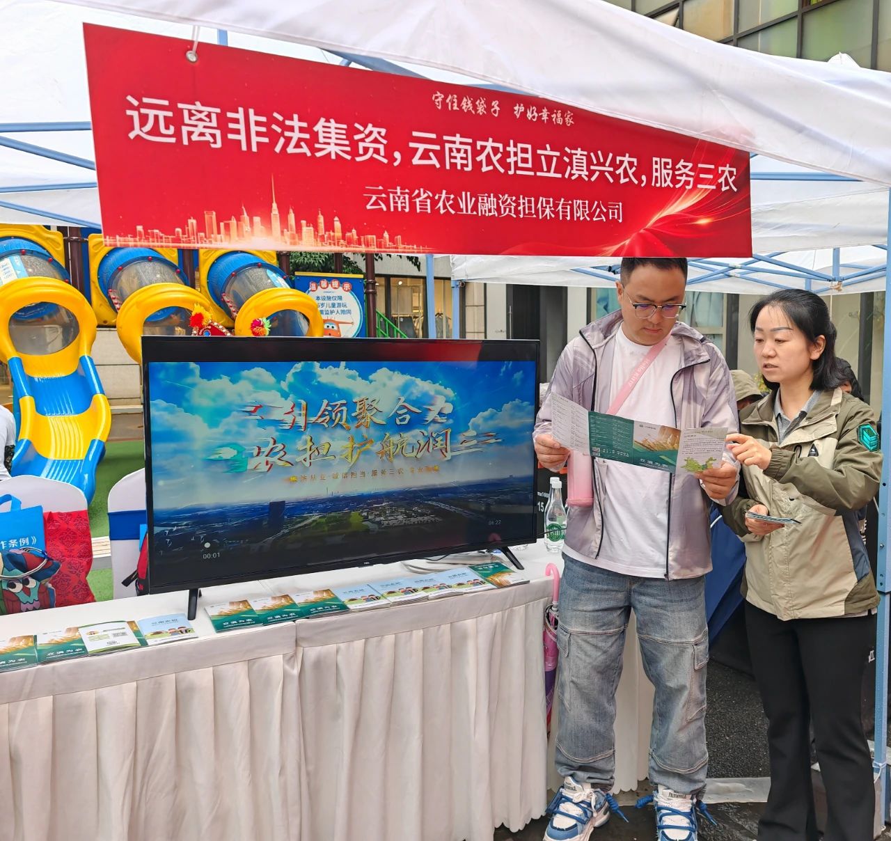 省農(nóng)擔(dān)公司設(shè)立專門咨詢臺(tái),通過發(fā)放業(yè)務(wù)宣傳折頁,播放公司宣傳片,積極為參與群眾講解農(nóng)業(yè)融資擔(dān)保政策。用通俗易懂的語言,結(jié)合“虛假農(nóng)業(yè)項(xiàng)目融資”和“虛假擔(dān)?!钡鹊湫桶咐?,為老百姓深度剖析非法集資分子利用群眾對(duì)政策不熟悉、渴望低成本融資等心理實(shí)施詐騙的套路;并現(xiàn)場提醒群眾:“選擇農(nóng)業(yè)擔(dān)保服務(wù),認(rèn)準(zhǔn)云南農(nóng)擔(dān)官方渠道”,引導(dǎo)群眾通過正規(guī)擔(dān)保機(jī)構(gòu)獲取金融服務(wù),切實(shí)保護(hù)自身合法權(quán)益。