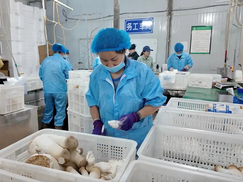 蓬勃發(fā)展的食用菌產(chǎn)業(yè)還催生出助農(nóng)增收的聯(lián)農(nóng)帶農(nóng)機制。陸良爨鄉(xiāng)綠圓菇業(yè)有限公司通過流轉(zhuǎn)土地,帶動周邊600多戶農(nóng)戶種植食用菌,每戶年均增收1.5萬元?!懊總€月打包分揀食用菌能有4000多元的收入,我很滿意。”家住工廠附近的農(nóng)戶朱麗仙說,除了土地租金,周圍農(nóng)戶還可以到車間里務工,實現(xiàn)家門口就業(yè)。
