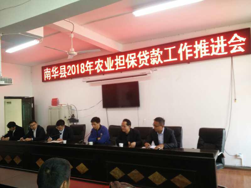為準(zhǔn)確對(duì)接客戶,加快業(yè)務(wù)落地,2018年3月27日,公司楚雄辦事處聯(lián)合楚雄州南華縣農(nóng)業(yè)局組織召開南華縣2018年農(nóng)業(yè)擔(dān)保貸款工作推進(jìn)會(huì)。南華縣70戶養(yǎng)殖大戶、南華縣農(nóng)商行、郵儲(chǔ)銀行南華縣龍城支行、農(nóng)行南華縣支行、南華興福村鎮(zhèn)銀行主要負(fù)責(zé)同志受邀參加會(huì)議。