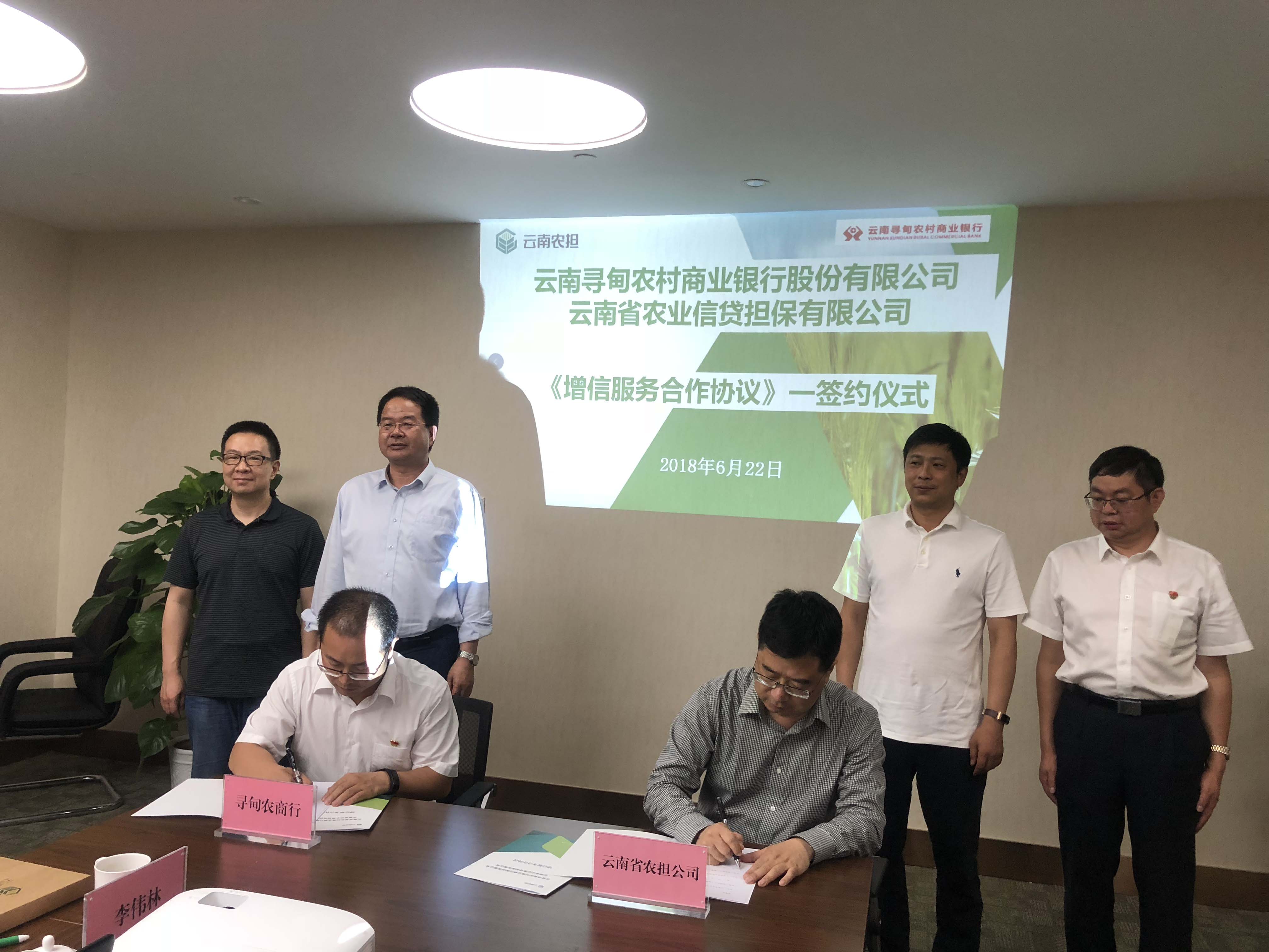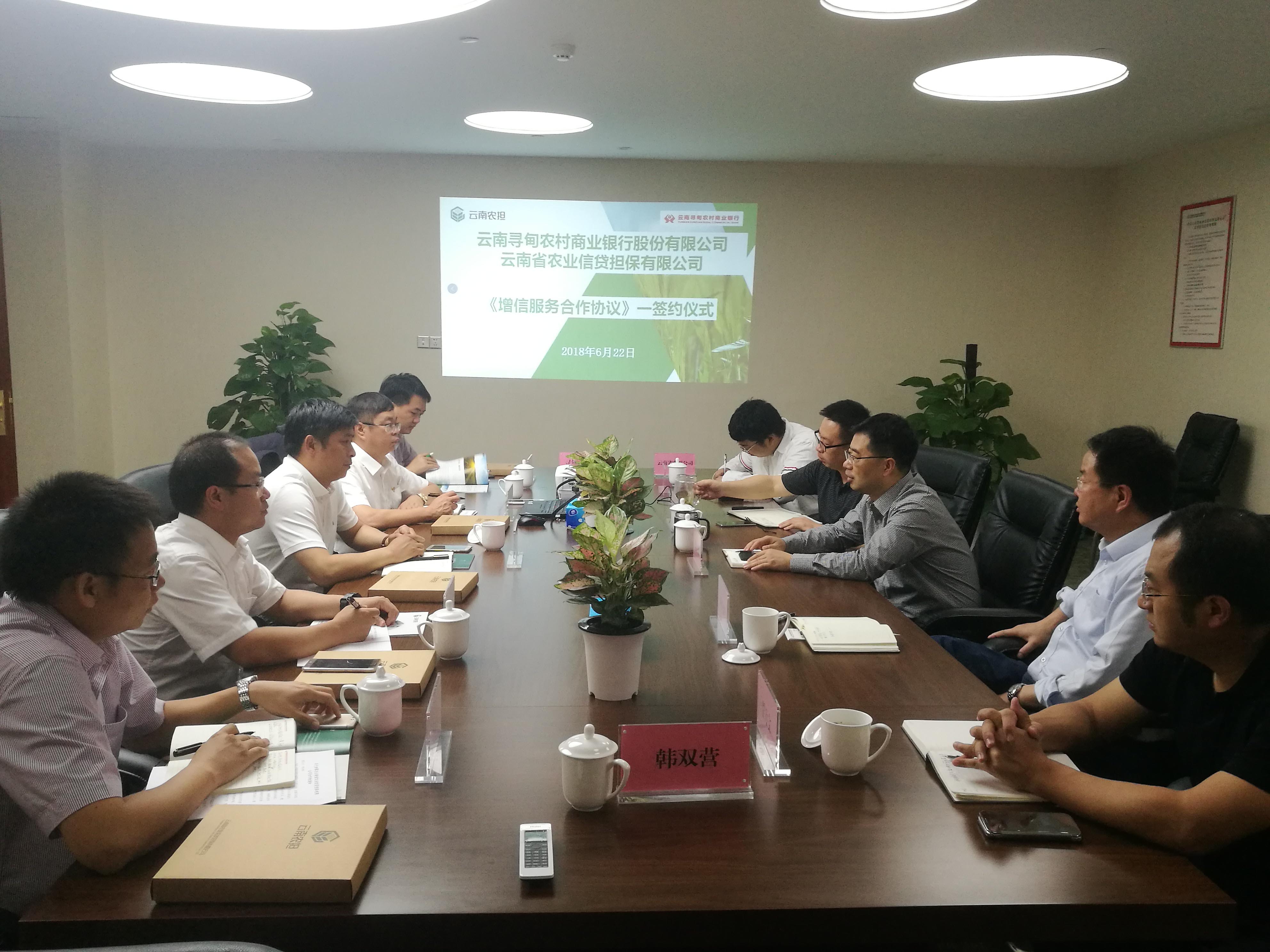 2018年6月22日,云南省農(nóng)業(yè)信貸擔(dān)保有限公司與云南尋甸農(nóng)村商業(yè)銀行股份有限公司在昆明召開(kāi)銀擔(dān)合作座談會(huì),并簽署《尋甸縣新型農(nóng)業(yè)經(jīng)營(yíng)主體增信服務(wù)合作協(xié)議》。省農(nóng)業(yè)信貸擔(dān)保有限公司董事長(zhǎng)郭影、總經(jīng)理杜開(kāi)波、副總經(jīng)理廖寅皓,尋甸農(nóng)商行董事長(zhǎng)虞燕林、行長(zhǎng)李葉忠、副行長(zhǎng)范彪等領(lǐng)導(dǎo)參加座談。