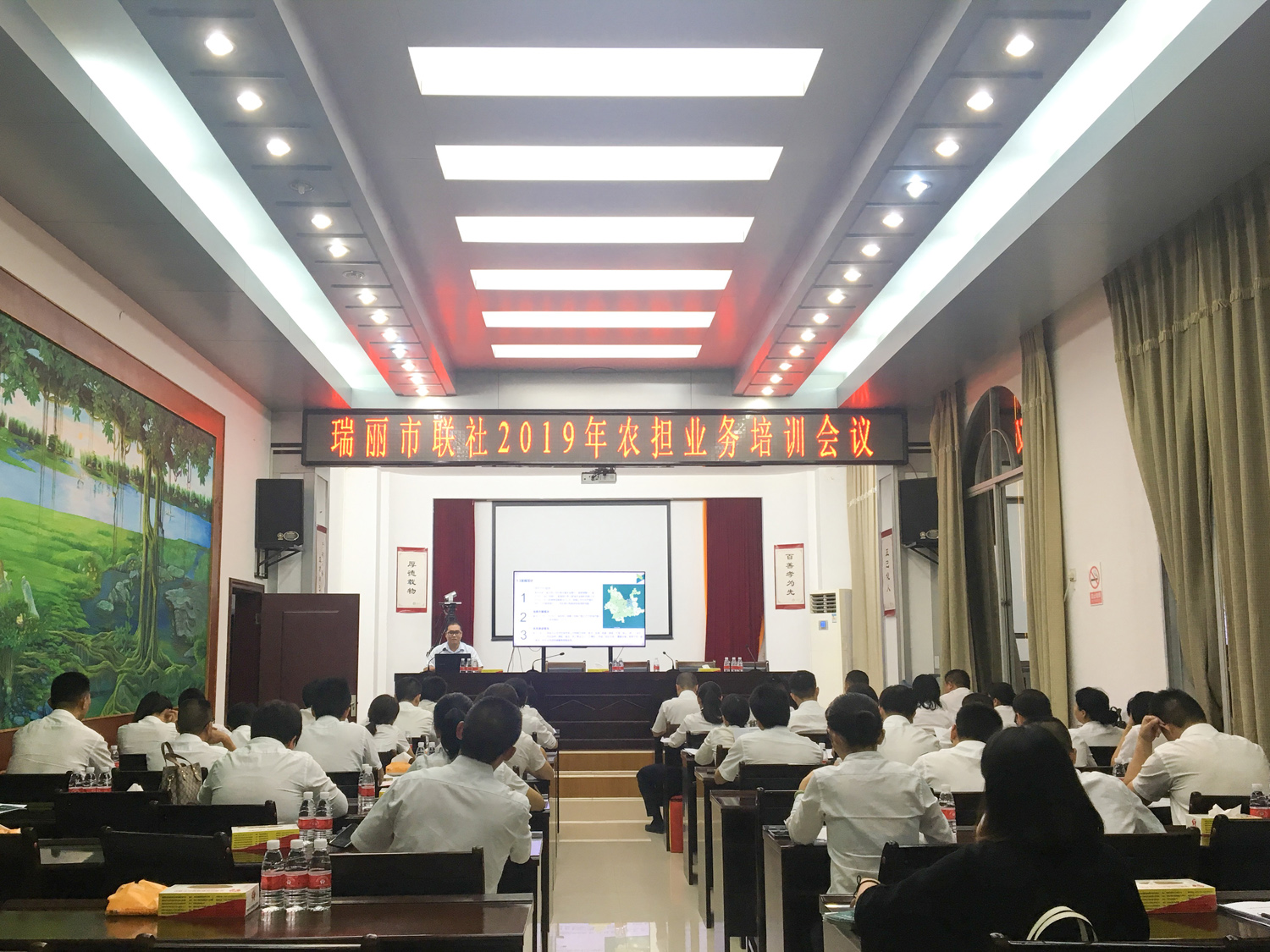 今天的德宏,是我國“一帶一路”的重要國際陸港、面向南亞東南亞輻射中心的關鍵點、中緬經濟走廊的門戶樞紐。為更好的推動自由貿易試驗區(qū)瑞麗市的業(yè)務開展,深化銀擔合作,10月29日,德宏辦事處項目經理閆忠魁、尹瑞、張雯雯一行赴瑞麗市農村信用合作聯社開展業(yè)務交流座談會,并受邀進行業(yè)務培訓會。瑞麗市聯社監(jiān)事長尹金能、副主任郭建材、信貸部經理施婷及市內各網點主任及信貸經理共40人參會。