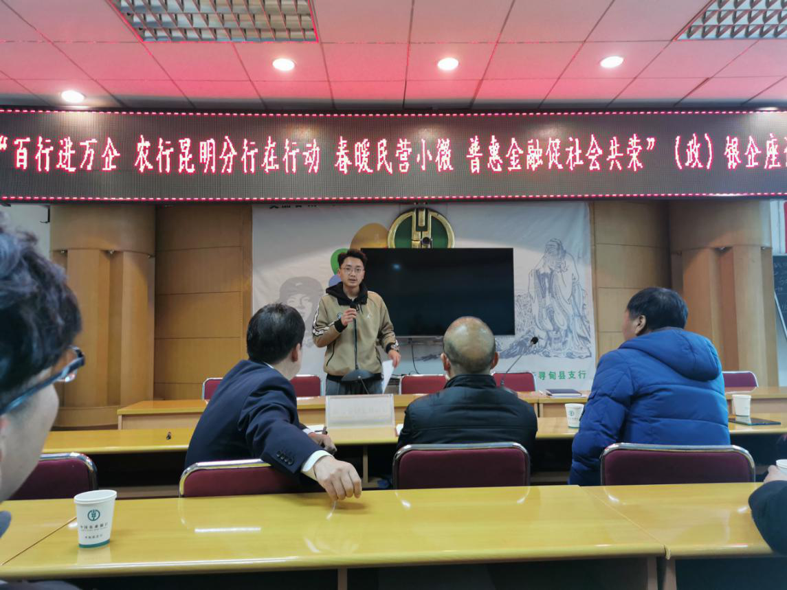 座談會上,尋甸辦事處段浩就公司情況,業(yè)務(wù)范圍、準入條件做詳細介紹,段浩指出:“當前小微企業(yè)普遍存在“融資難、融資貴”問題,深究其根源,主要集中在農(nóng)業(yè)小微企業(yè)抵押物不足及企業(yè)財務(wù)制度缺失兩個方面,導(dǎo)致企業(yè)一面無法順利融資,銀行無處發(fā)放貸款的矛盾突出,國家關(guān)于支持小微企業(yè)發(fā)展的優(yōu)惠政策,無法真正落到實處,為小微企業(yè)融資帶來便利。時下,解決這一問題,一是依靠企業(yè)規(guī)范自身經(jīng)營管理制度,逐步健全財務(wù)制度;二是引入政策性擔保機構(gòu),化解抵押物不足的問題,其關(guān)鍵是打通政、銀、企、擔四方合作交流渠道,破解信息不對稱造成的合作無法實現(xiàn)的問題。目前,作為云南省唯一一家農(nóng)業(yè)信貸擔保機構(gòu),省農(nóng)擔公司堅持財農(nóng)(40)號文件精神,按照貼農(nóng)、為農(nóng)、惠農(nóng)的宗旨,堅持“專注服務(wù)農(nóng)業(yè),專注服務(wù)農(nóng)業(yè)適度規(guī)模經(jīng)營主體”的政策定位,依托財政,積極為農(nóng)業(yè)適度規(guī)模經(jīng)營主體提供融資擔保服務(wù),農(nóng)業(yè)銀行是五大行中農(nóng)業(yè)板塊的航空母艦,雙方在發(fā)展理念上高度契合,更應(yīng)該深化合作,以自身行動共同為尋甸縣高原特色現(xiàn)代化農(nóng)業(yè)產(chǎn)業(yè)發(fā)展添磚加瓦?!?