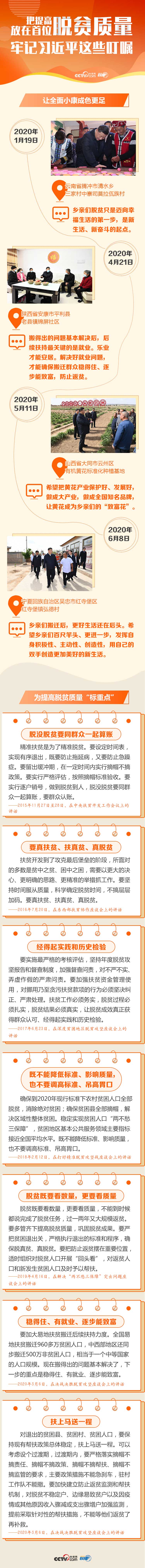央視網(wǎng)《聯(lián)播+》特擷取總書記關(guān)于確保脫貧攻堅質(zhì)量的經(jīng)典話語,與您一起堅定高質(zhì)量完成脫貧攻堅目標任務的必勝信心。