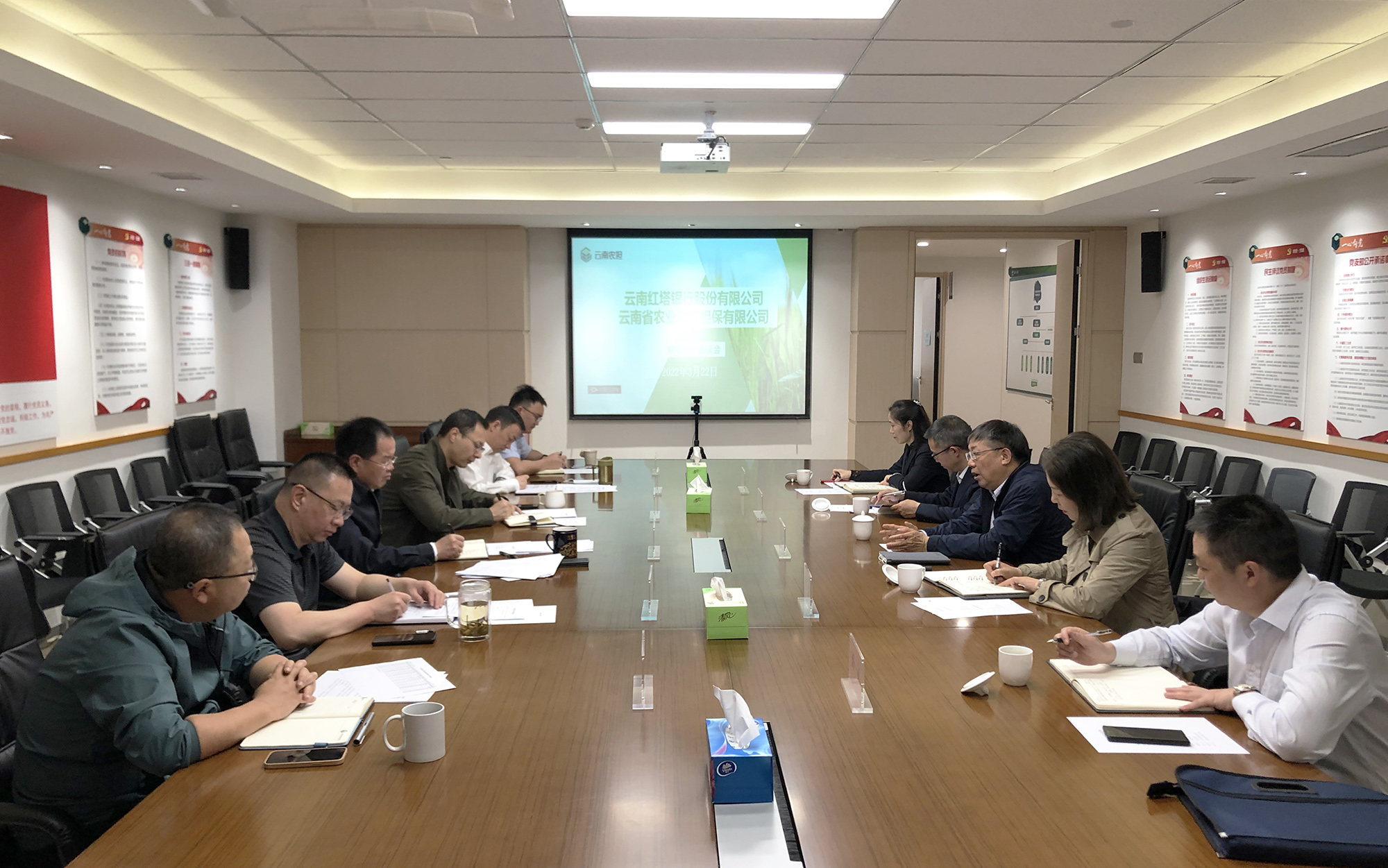 3月22日,云南農(nóng)擔(dān)與紅塔銀行召開銀擔(dān)合作座談會。紅塔銀行行長張振民、行長助理張繼、風(fēng)險管理部、普惠金融業(yè)務(wù)部,公司董事長杜開波、總經(jīng)理李世偉、副總經(jīng)理廖寅皓、副總經(jīng)理梁威、業(yè)務(wù)發(fā)展部及戰(zhàn)略發(fā)展部參加會議。雙方就現(xiàn)階段戰(zhàn)略合作有關(guān)事宜進行深入交流并達成共識。