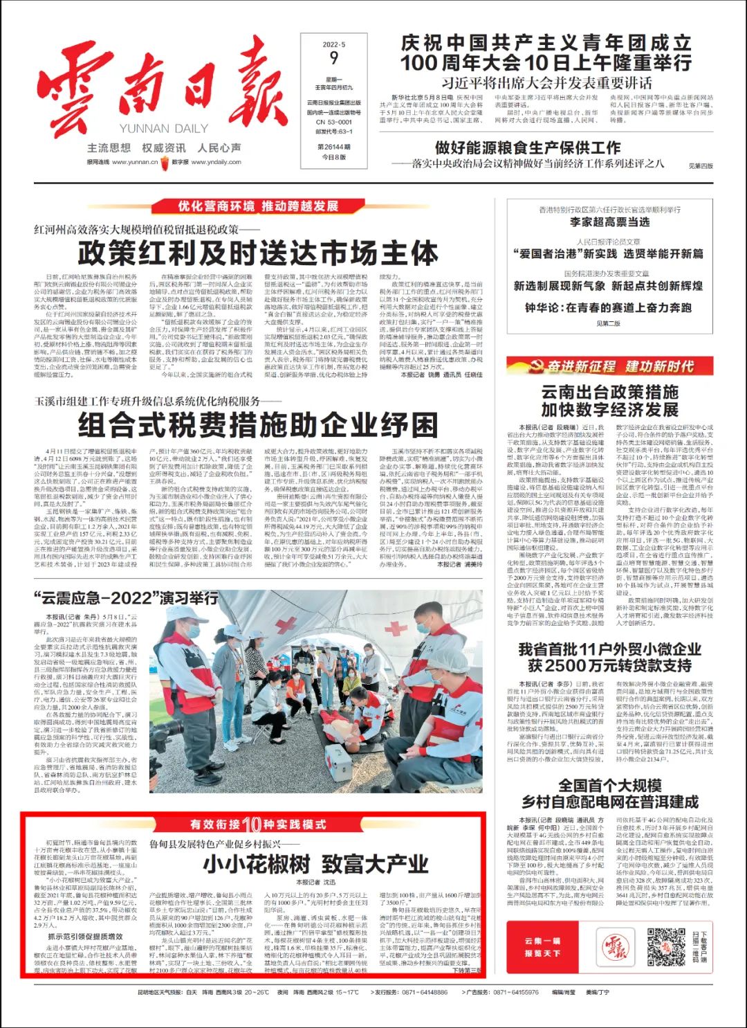 《云南日報》頭版