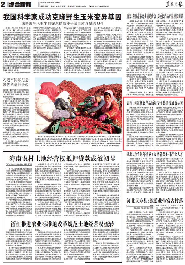 日前,據(jù)云南省農(nóng)業(yè)農(nóng)村廳消息,全省已有鳳慶縣、元謀縣、硯山縣、嵩明縣、麒麟?yún)^(qū)、馬龍區(qū)、師宗縣、廣南縣、賓川縣、瑞麗市10個(gè)獲授牌的國家農(nóng)產(chǎn)品質(zhì)量安全縣(市),其農(nóng)產(chǎn)品質(zhì)量安全水平穩(wěn)定在98.9%以上。