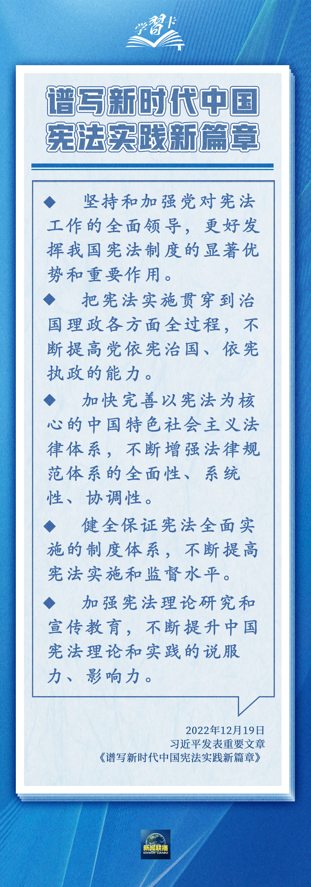 圍繞依憲治國、依憲執(zhí)政,習近平總書記多次在不同場合強調(diào),憲法是黨和人民意志的集中體現(xiàn),豐富和發(fā)展了中國特色社會主義法治理論,也為推進國家治理體系和治理能力現(xiàn)代化指明了根本路徑和努力方向。一起學習→