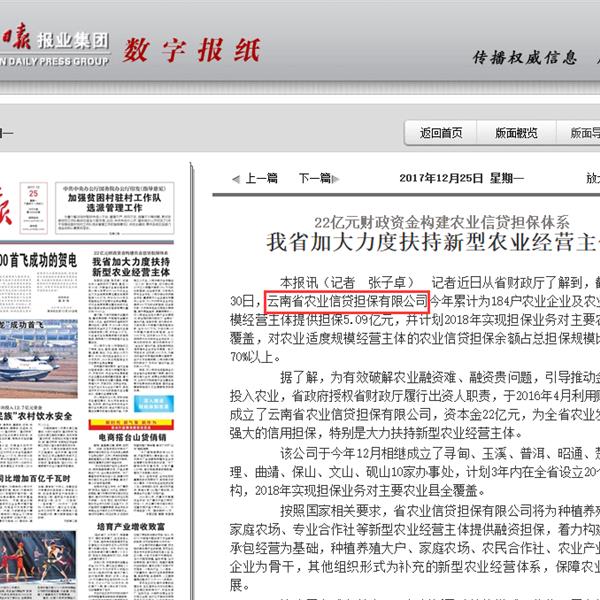 云南省加大力度扶持新型農(nóng)業(yè)經(jīng)營(yíng)主體 22億元財(cái)政資金構(gòu)建農(nóng)業(yè)信貸擔(dān)保體系